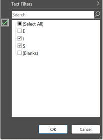 - Filter out all “E”, “e” and blanks (so only “S” and “i” selected); Do this for every column you want to explicitly select