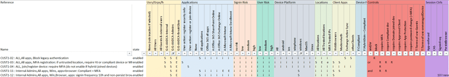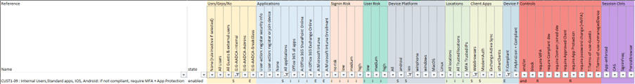 (For sake of simplicity, note that the excel as shown above does not show all new features in CA rules, such as multiple guest-types, app filters, etc … We’ll come back to that later on)